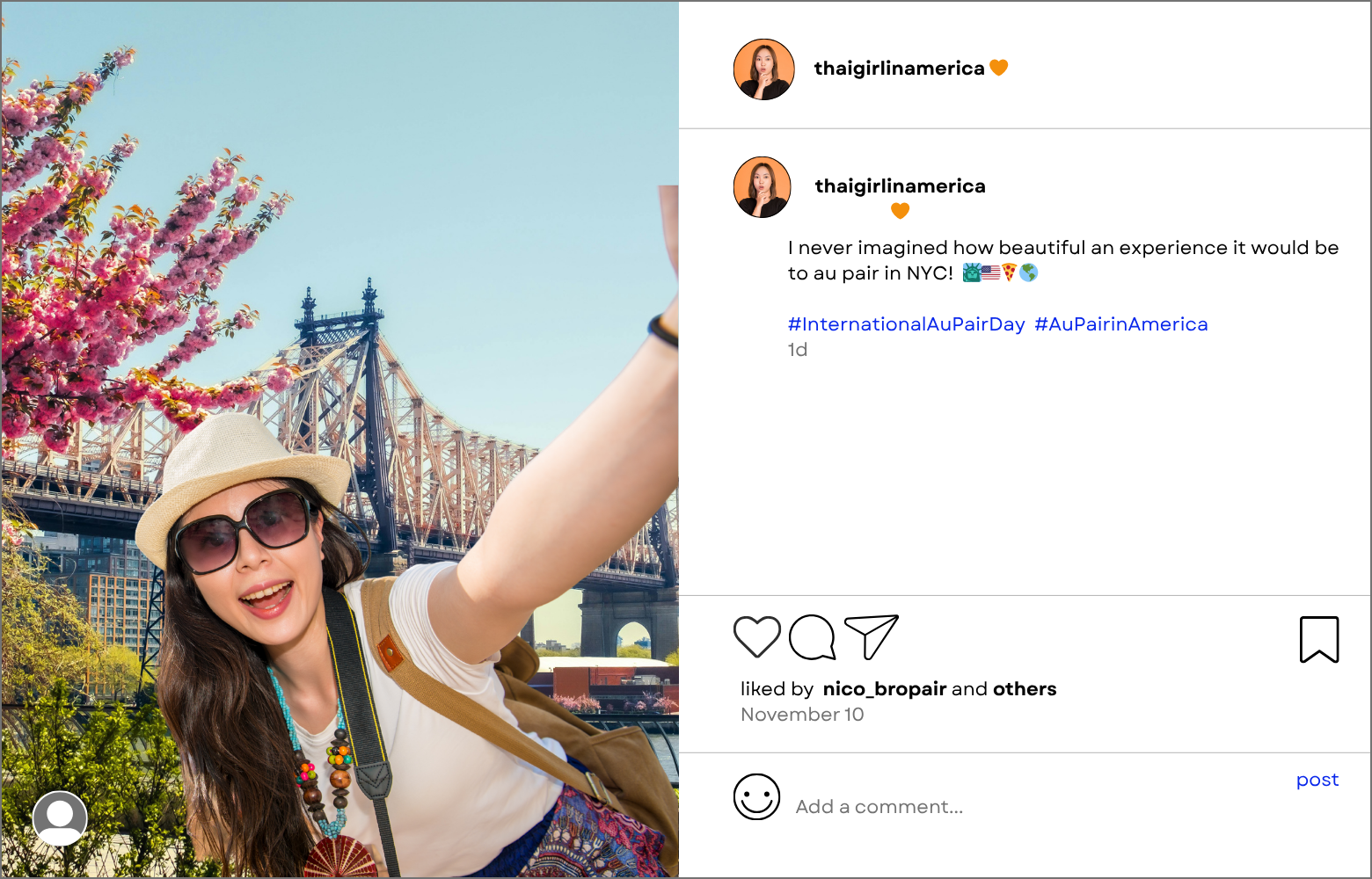 - What to Post: Share a static photo (no videos!) showing you experiencing your au pair year—alone, with friends, or with your host family. Make it memorable by posting in front of a US landmark (the Statue of Liberty, the Golden Gate bridge, a national parks, at a baseball game—the choice is yours!)